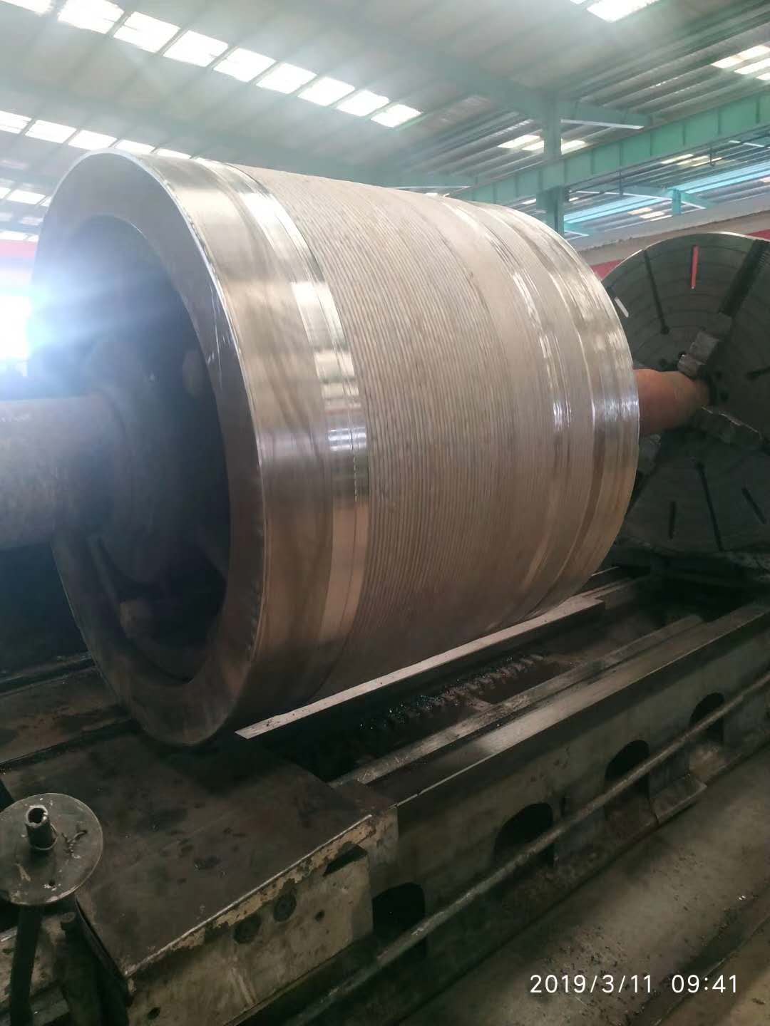 3)焊后整体检测辊套外形尺寸符合图纸要求(直径预留5mm左右收缩余量)
